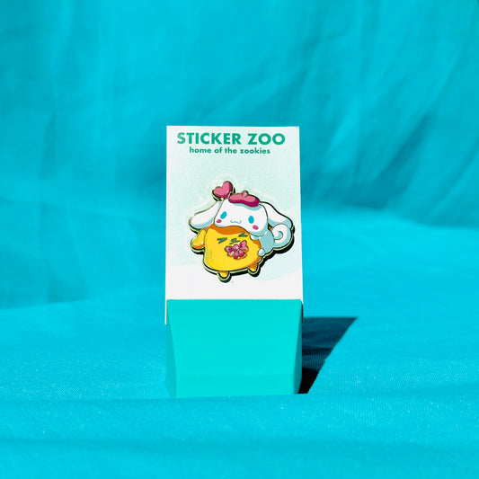 Orange Dog with Chainsaw Hugging Thai Tea Pin