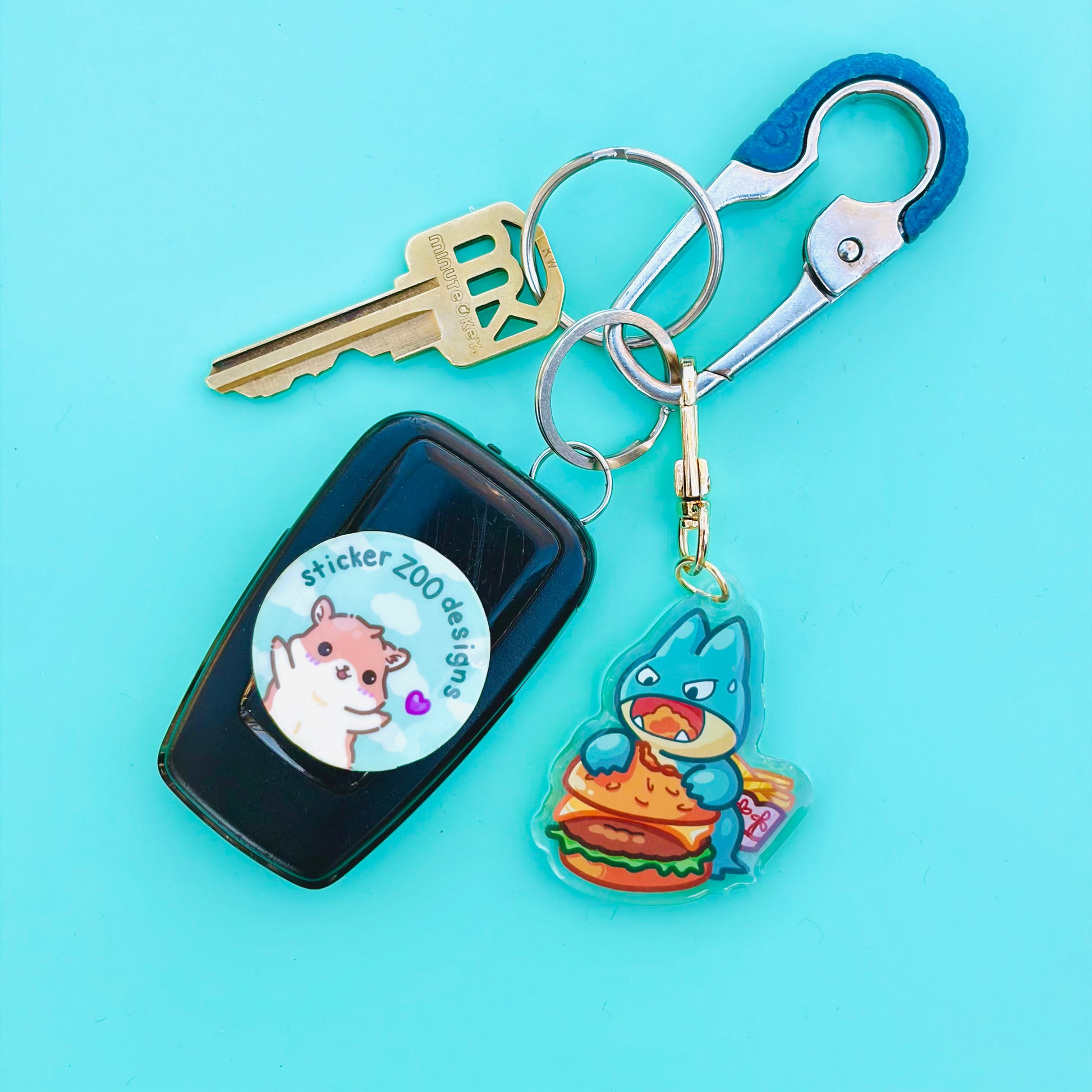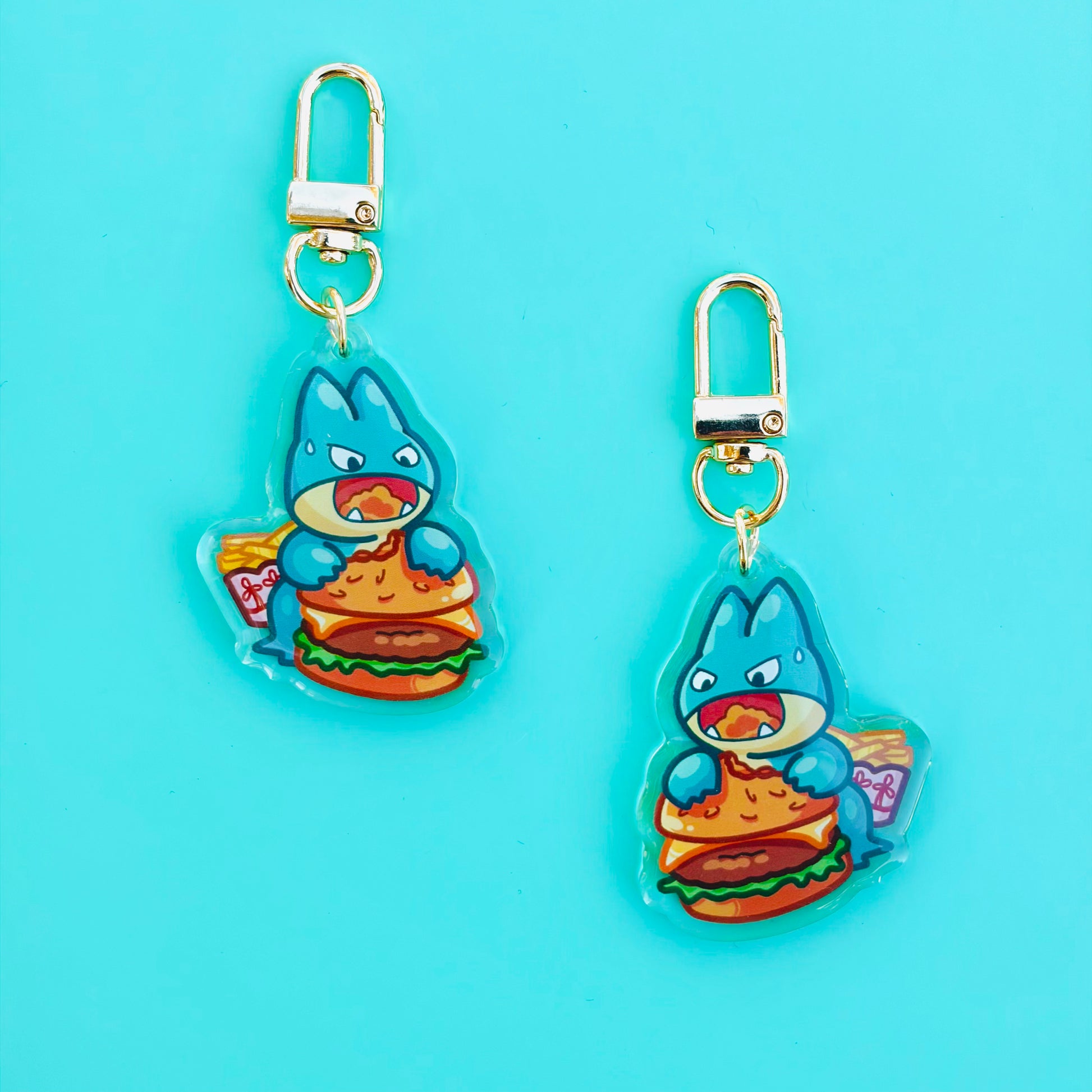 • Double-sided acrylic epoxy keychain with gold clip.