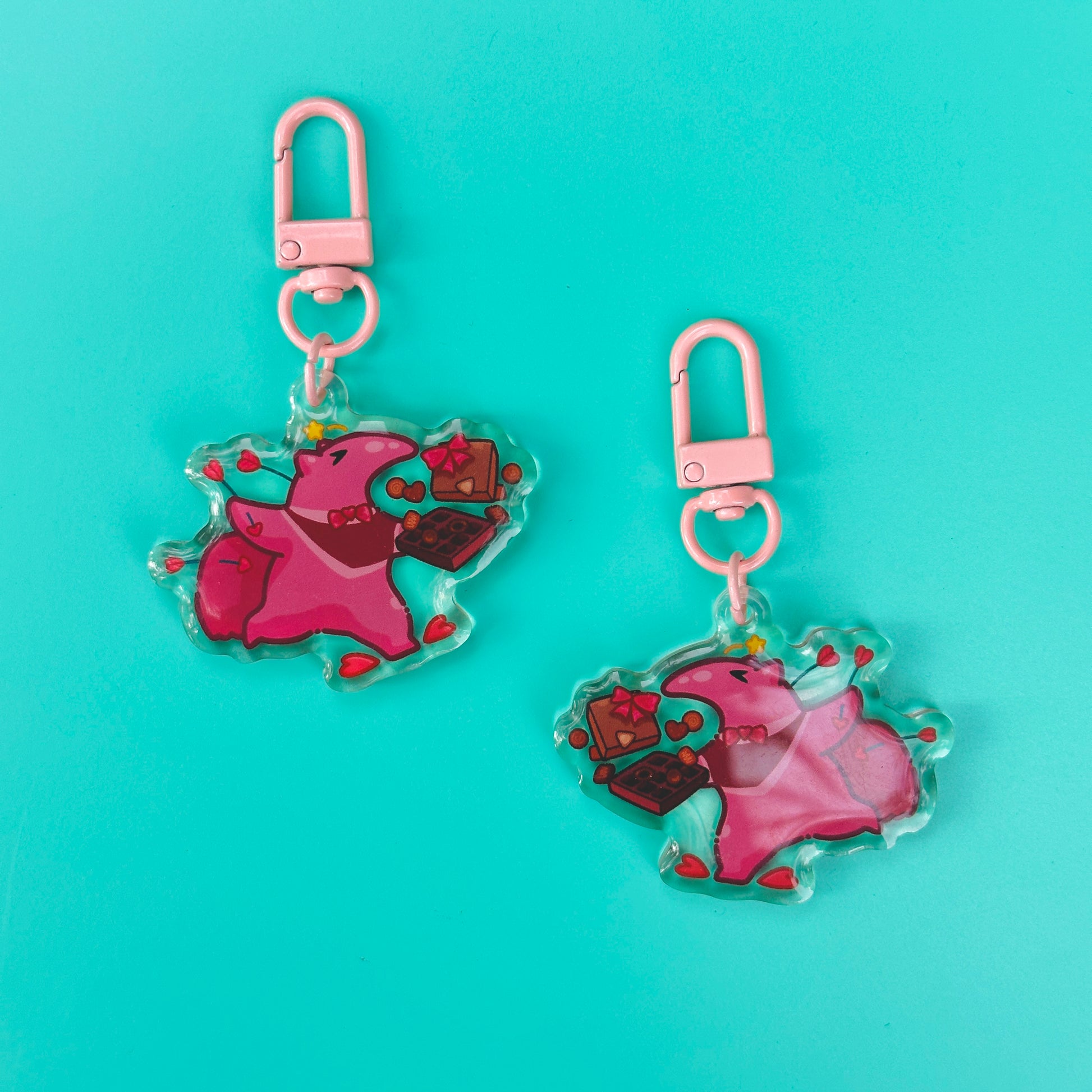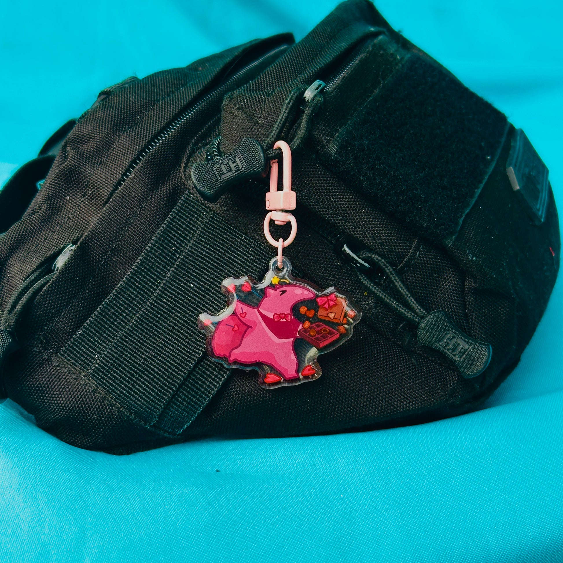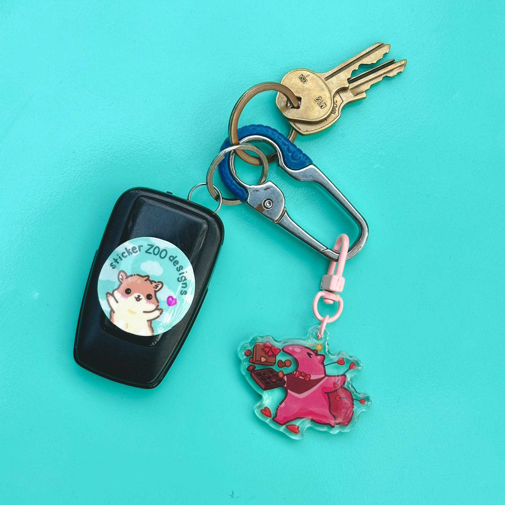 • Double-sided acrylic epoxy keychain with clip on pink chain