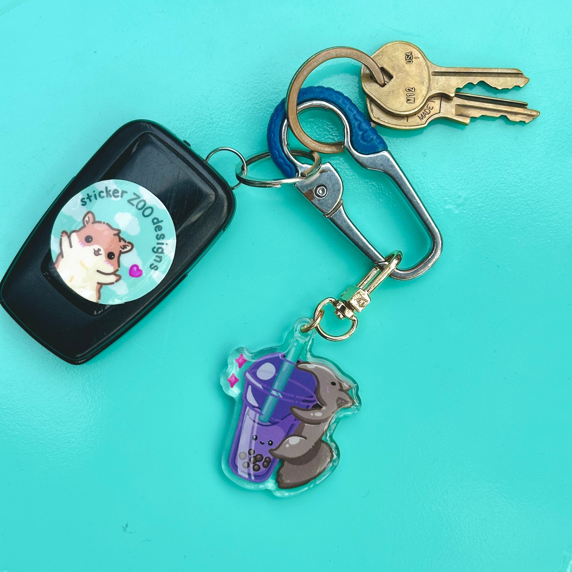 • Double-sided acrylic epoxy keychain with clip on gold chain