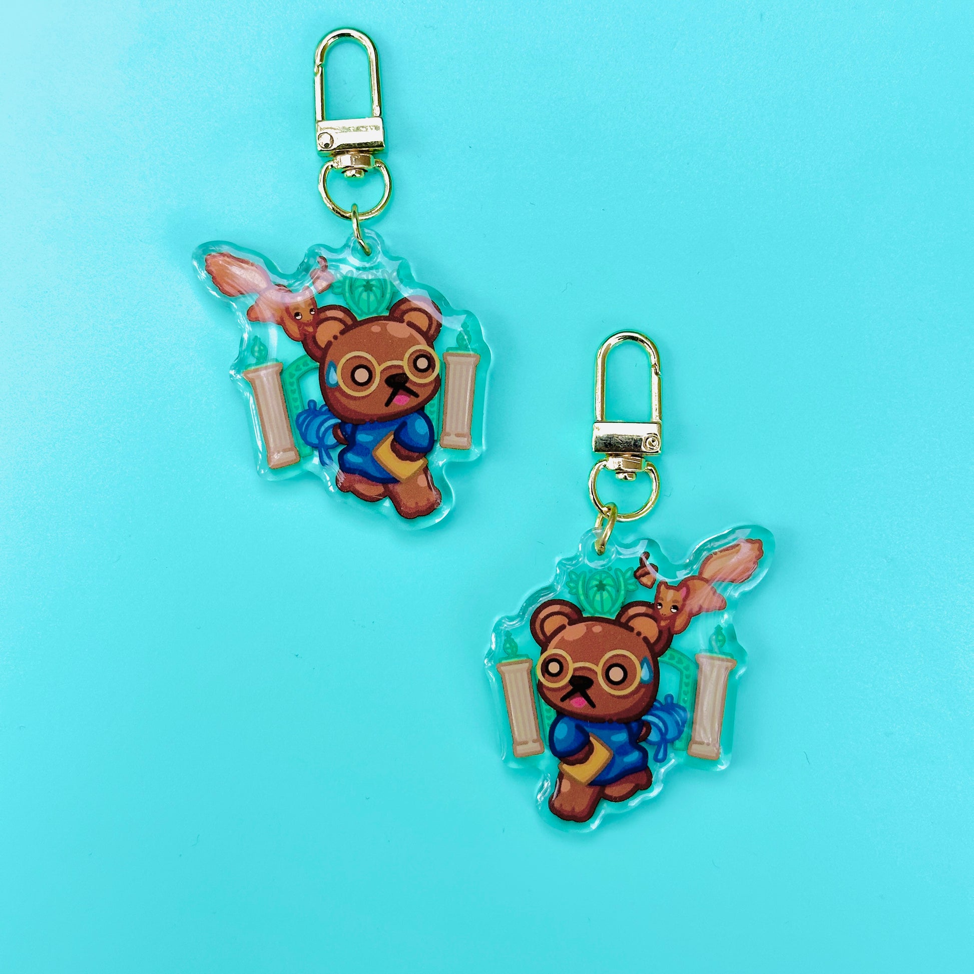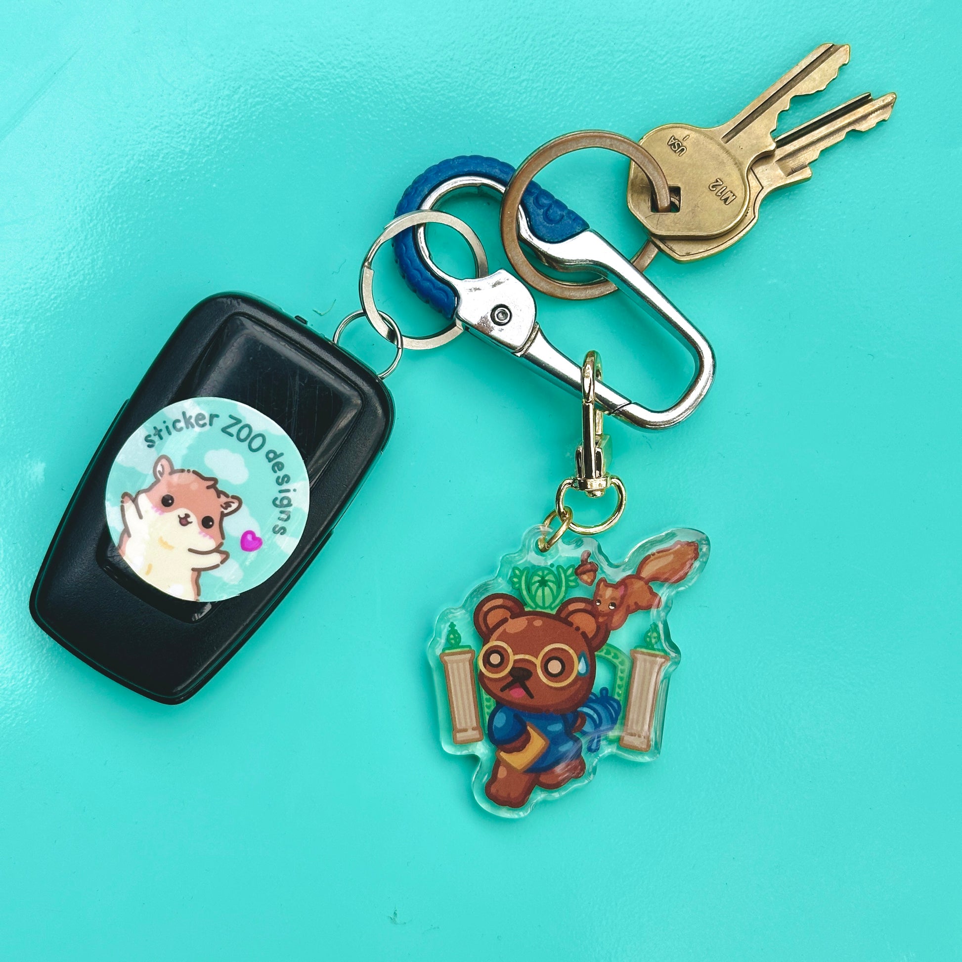 • Double-sided acrylic epoxy keychain with clip on gold chain
