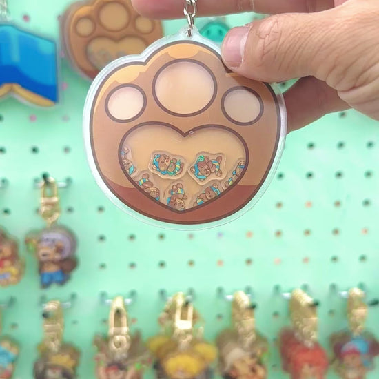 The bear paw shaker allows you to see inside the paw and witness the Woodie characters bouncing off the wall. This was inspired by the bruin mascot at UCLA.