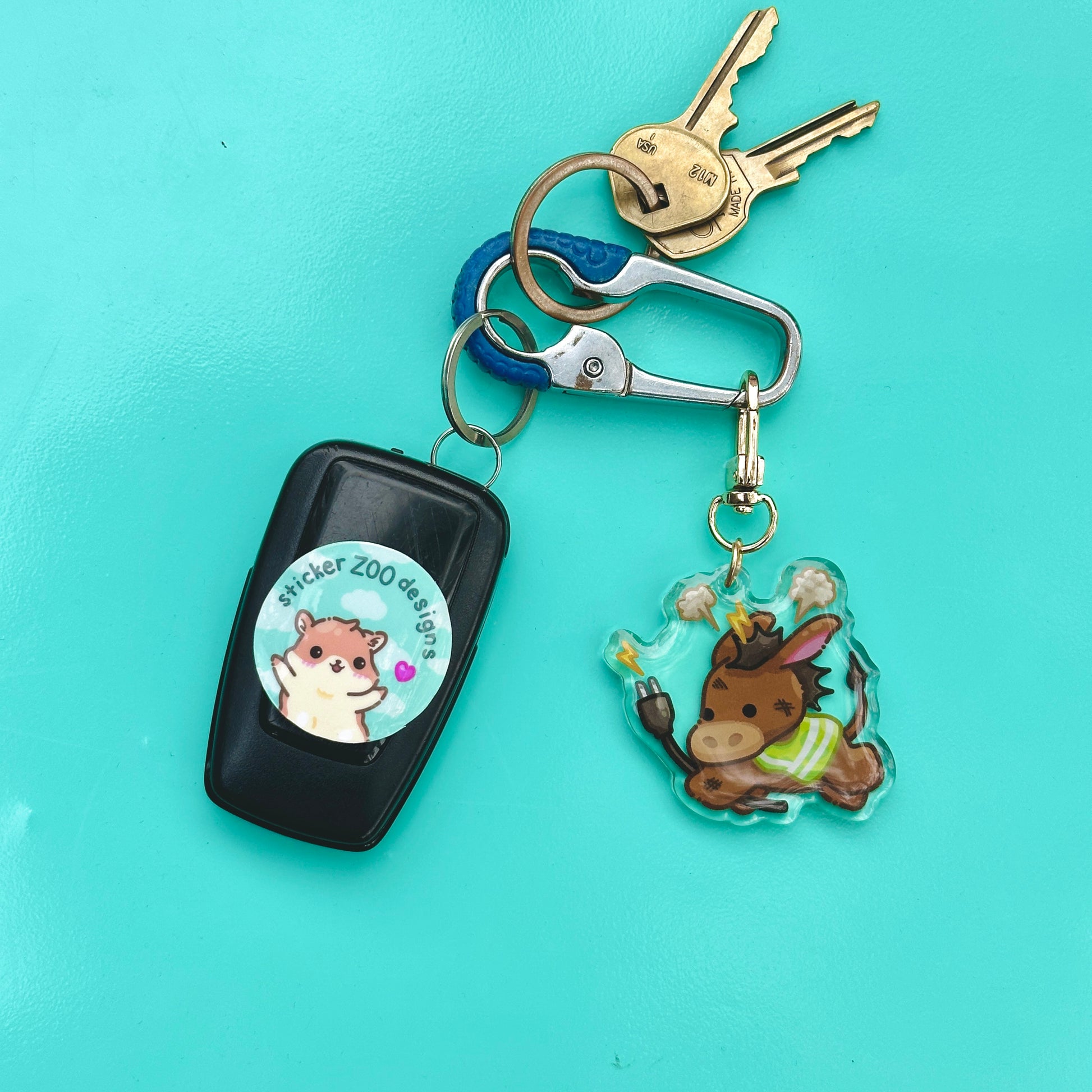• Double-sided acrylic epoxy keychain with clip on gold chain