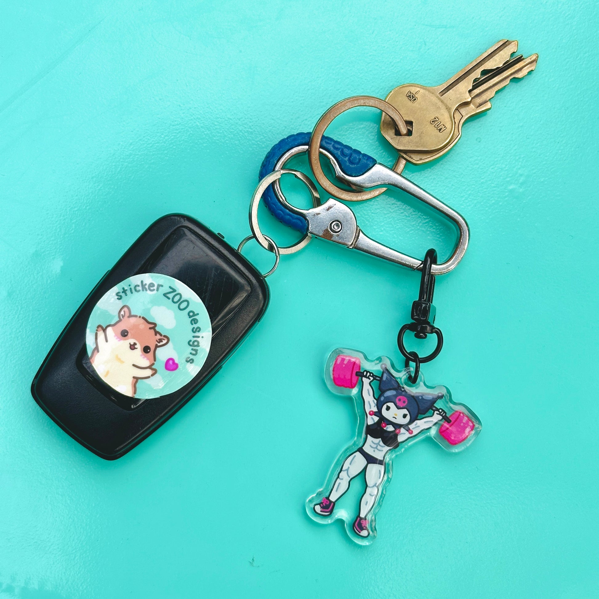 • Double-sided acrylic epoxy keychain with black clip.