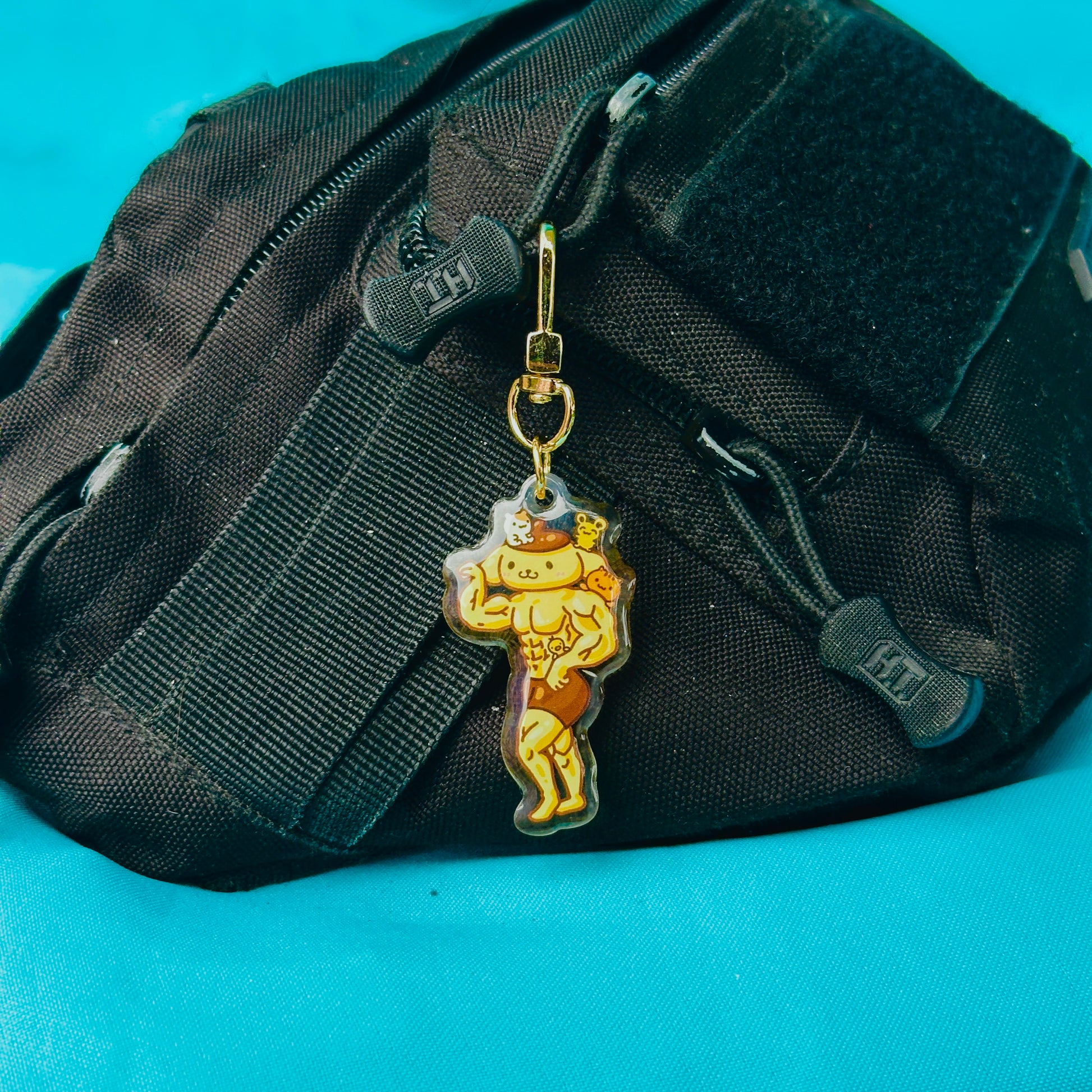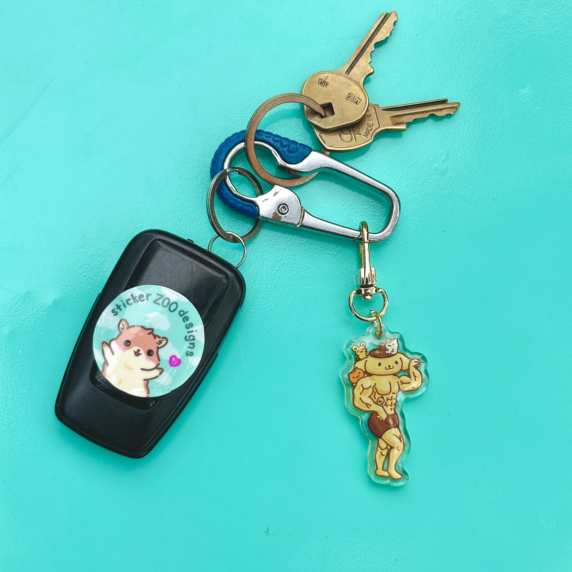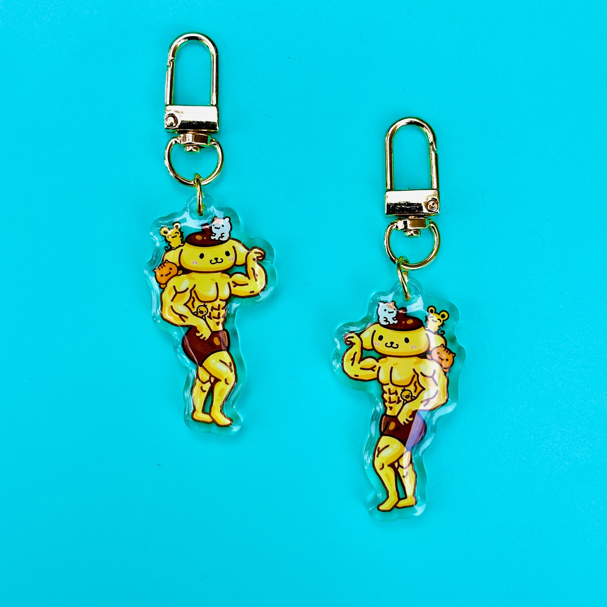• Double-sided acrylic epoxy keychain with gold clip.