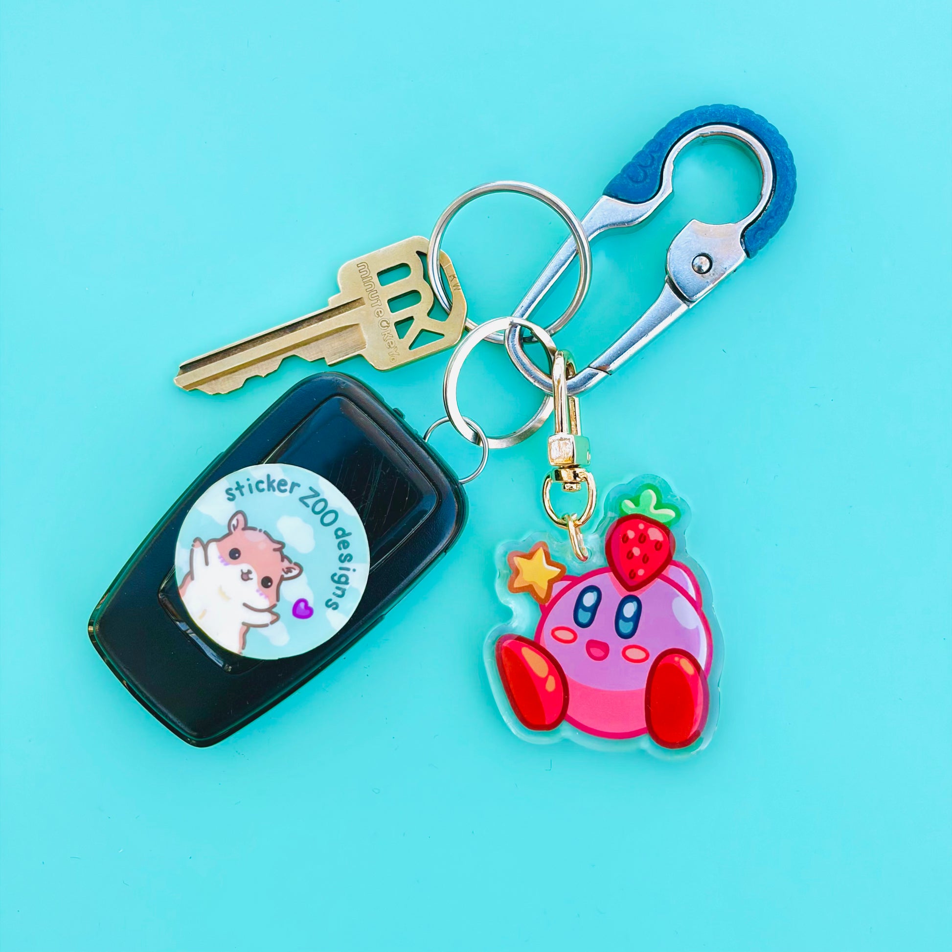 • Double-sided acrylic epoxy keychain with gold clip.