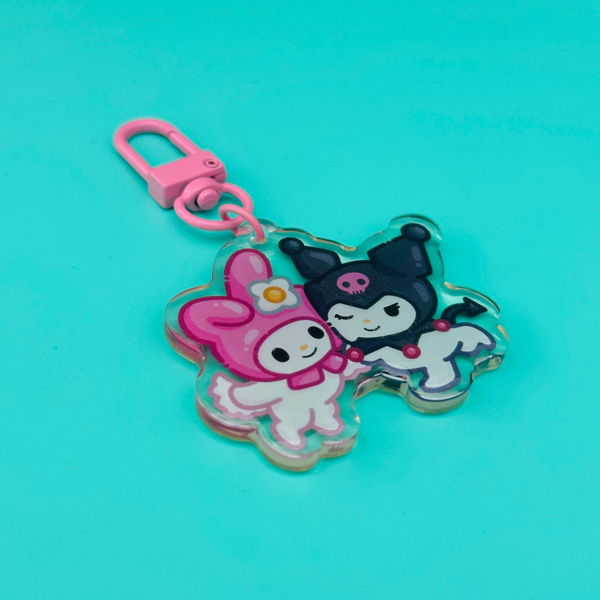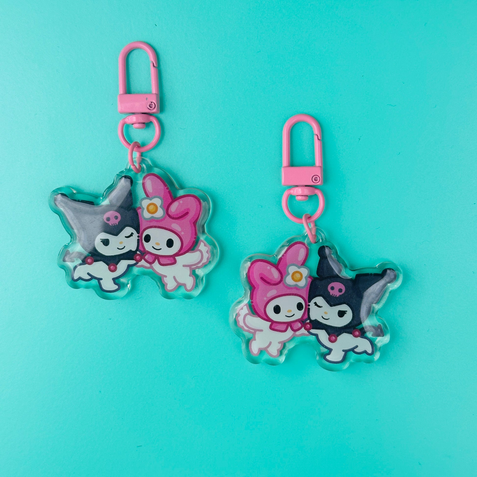 Kuromi & Mymelody lovers. The cutest charms to decorate your lanyards, keychain sets, and bags such as fanny packs.