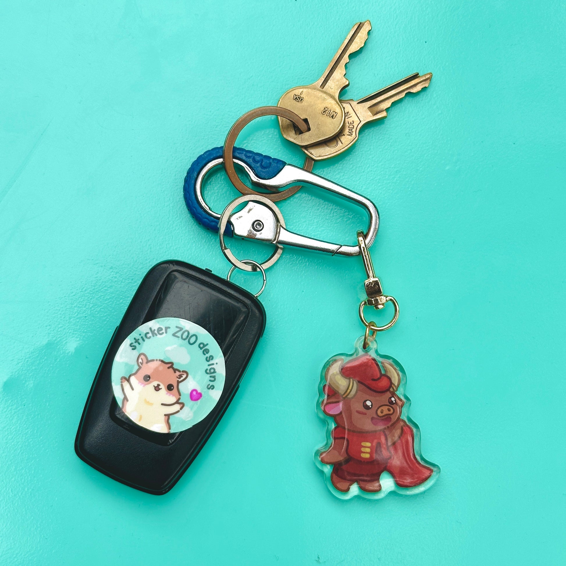 • Double-sided acrylic epoxy keychain with clip on gold chain