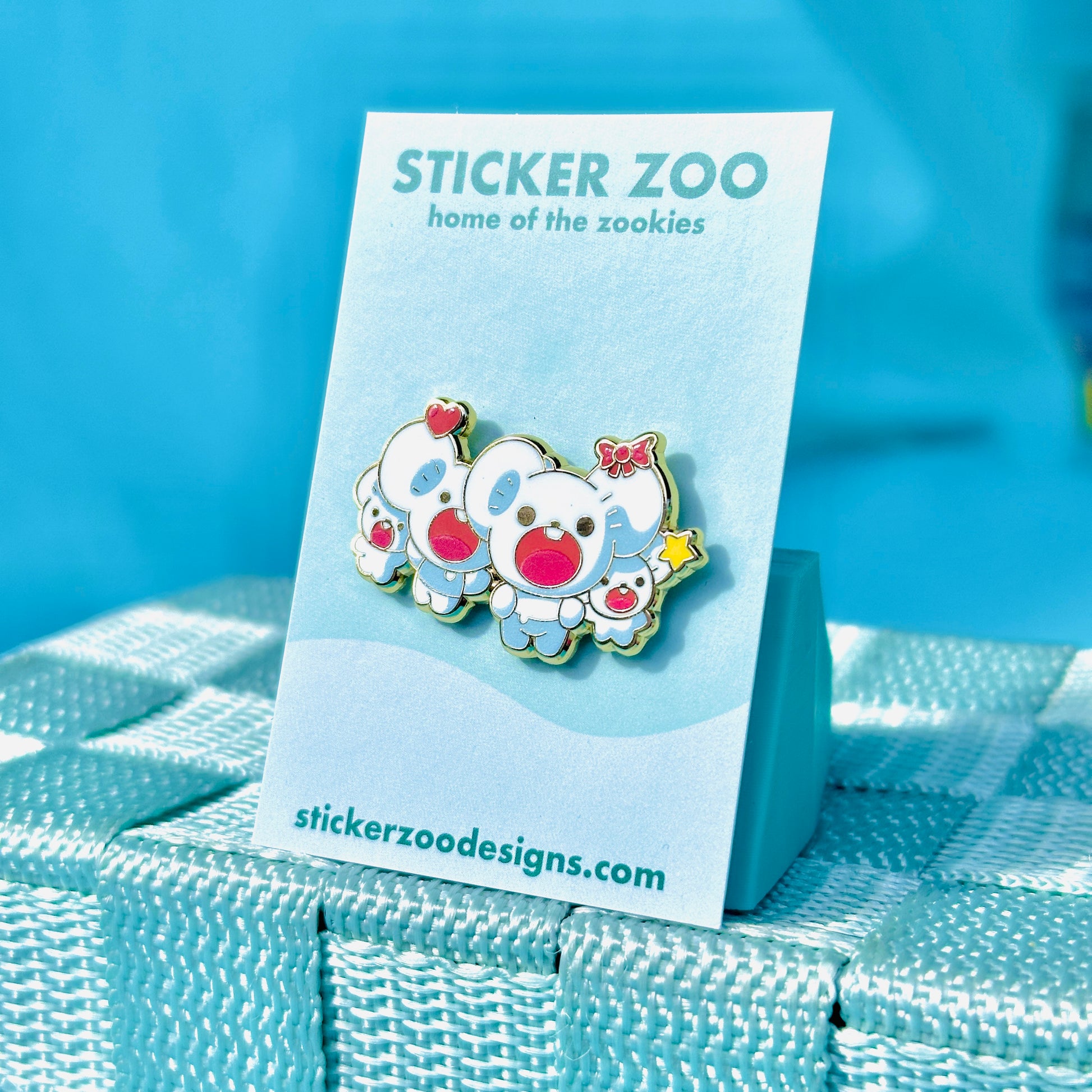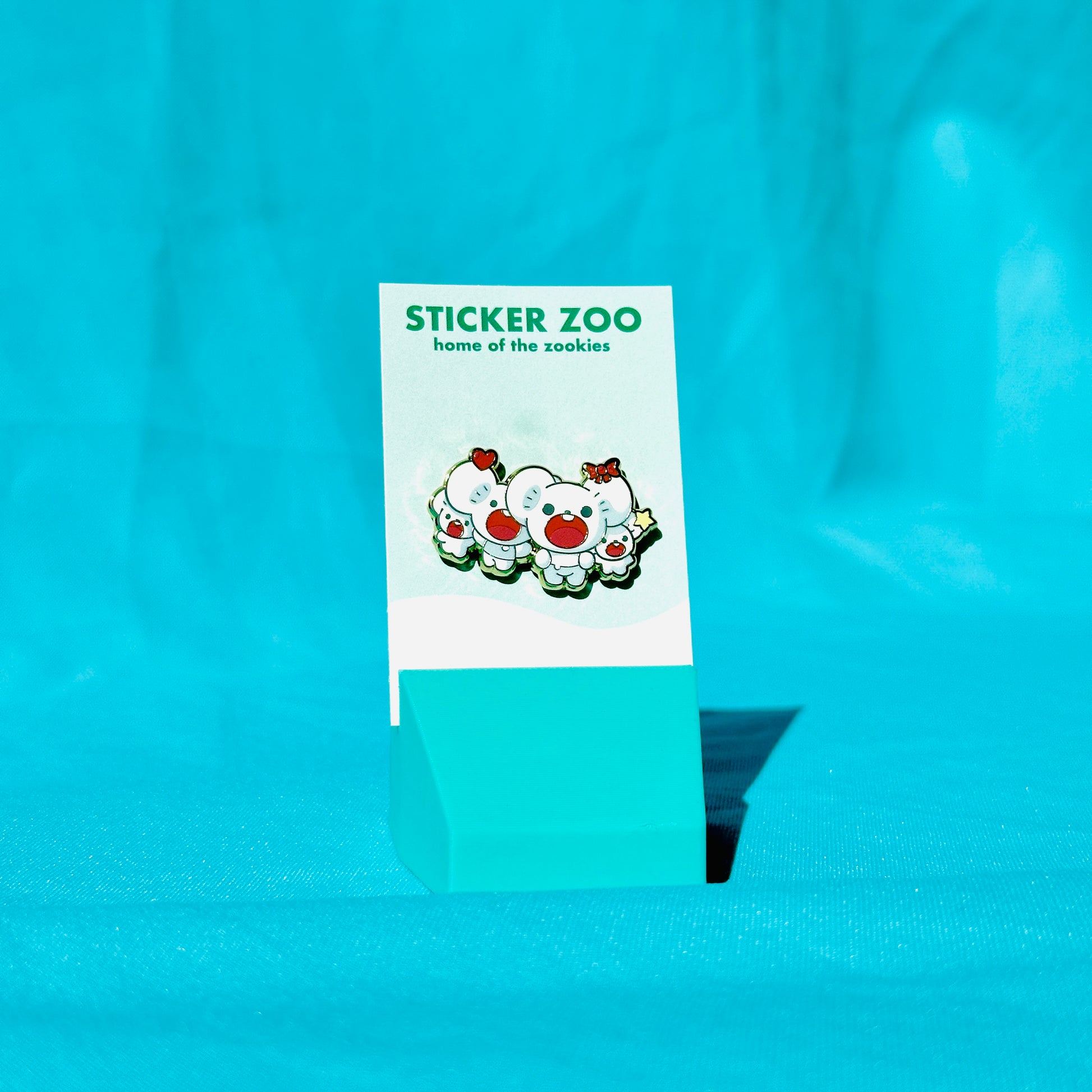 Pin size: 1.75", double post/black clutches with custom mint green Sticker Zoo backing card.