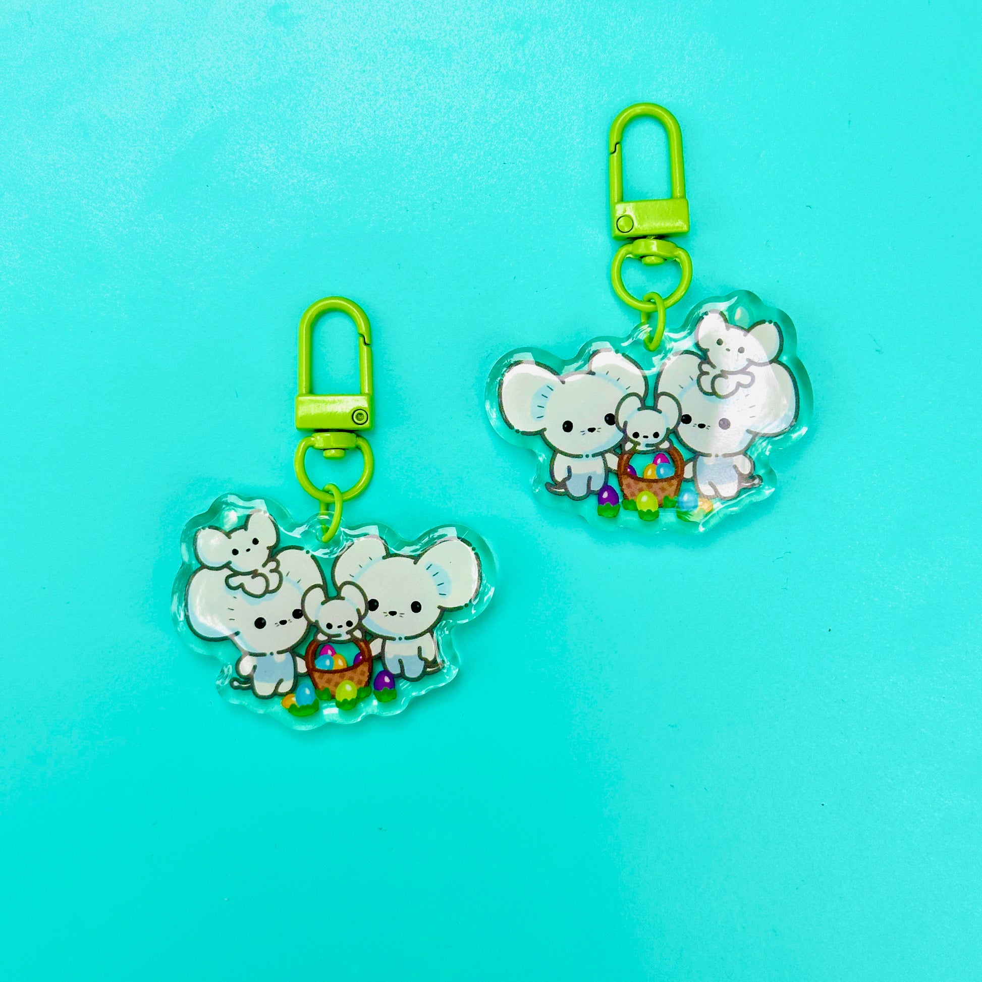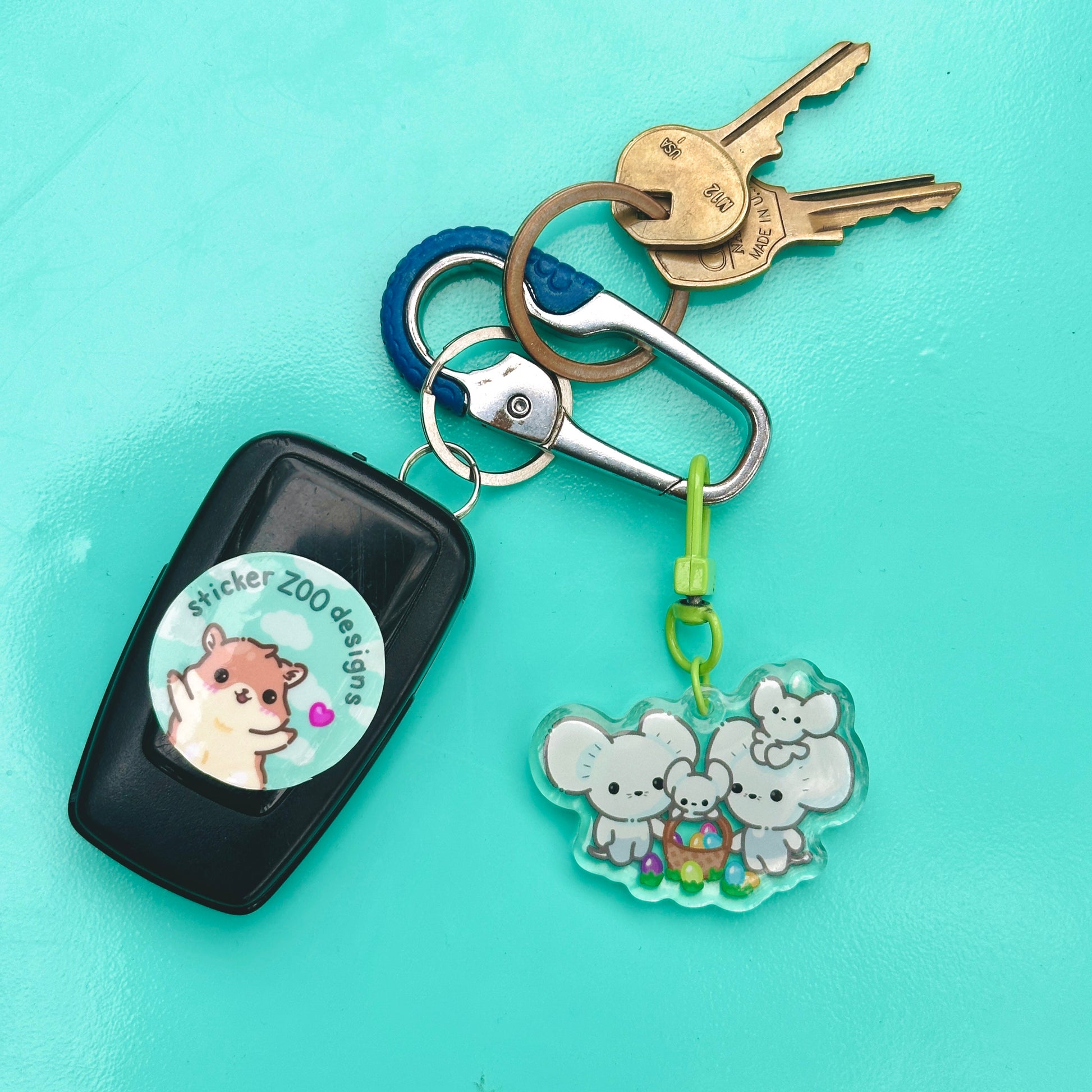 • Double-sided acrylic epoxy keychain with clip on green chain