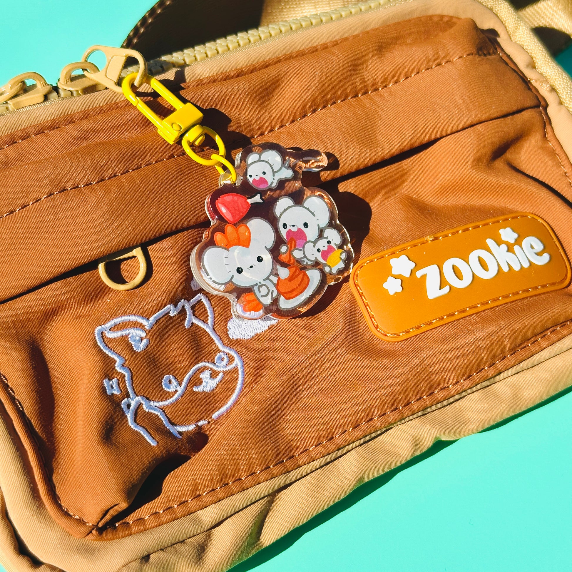 • Double-sided acrylic epoxy keychain with clip on yellow chain