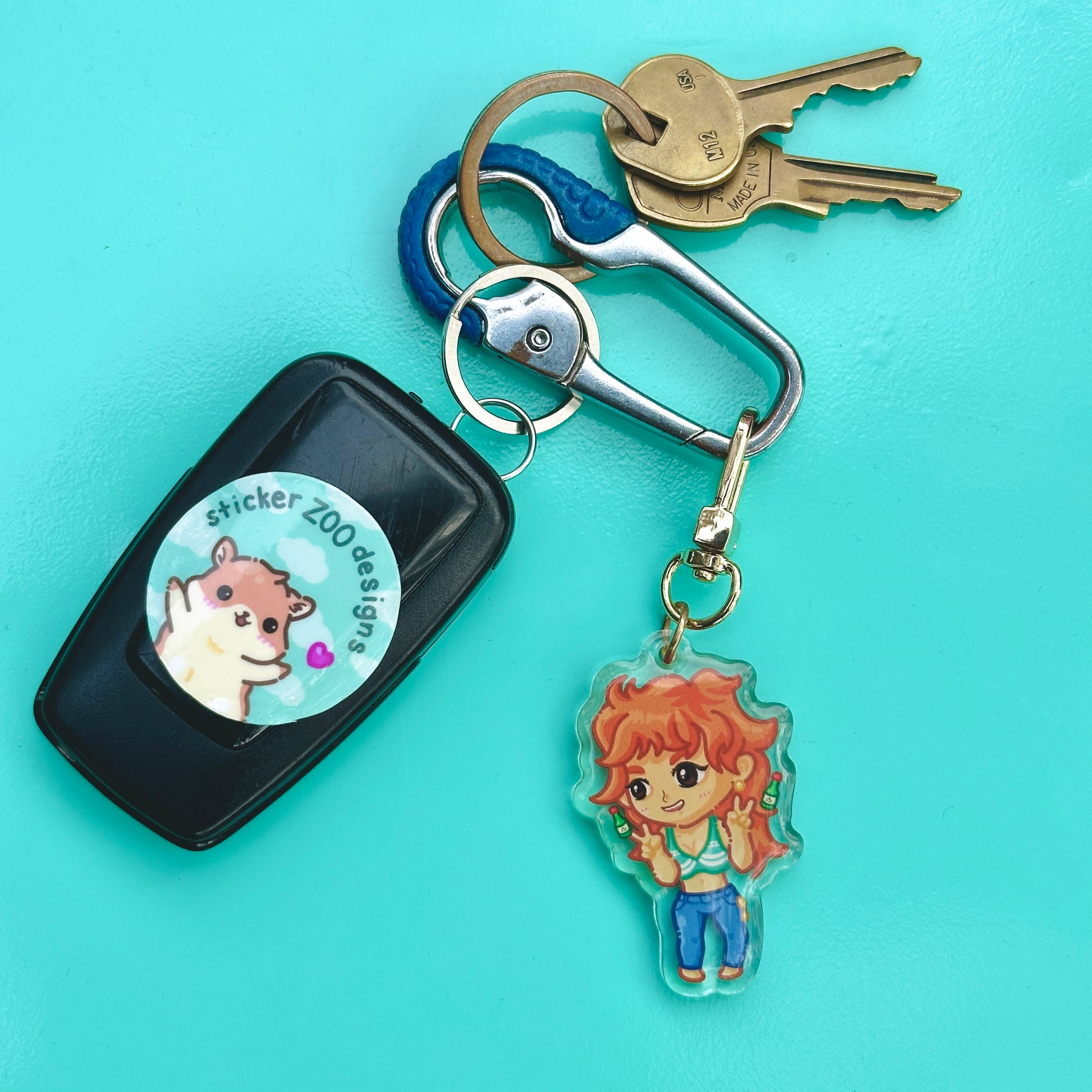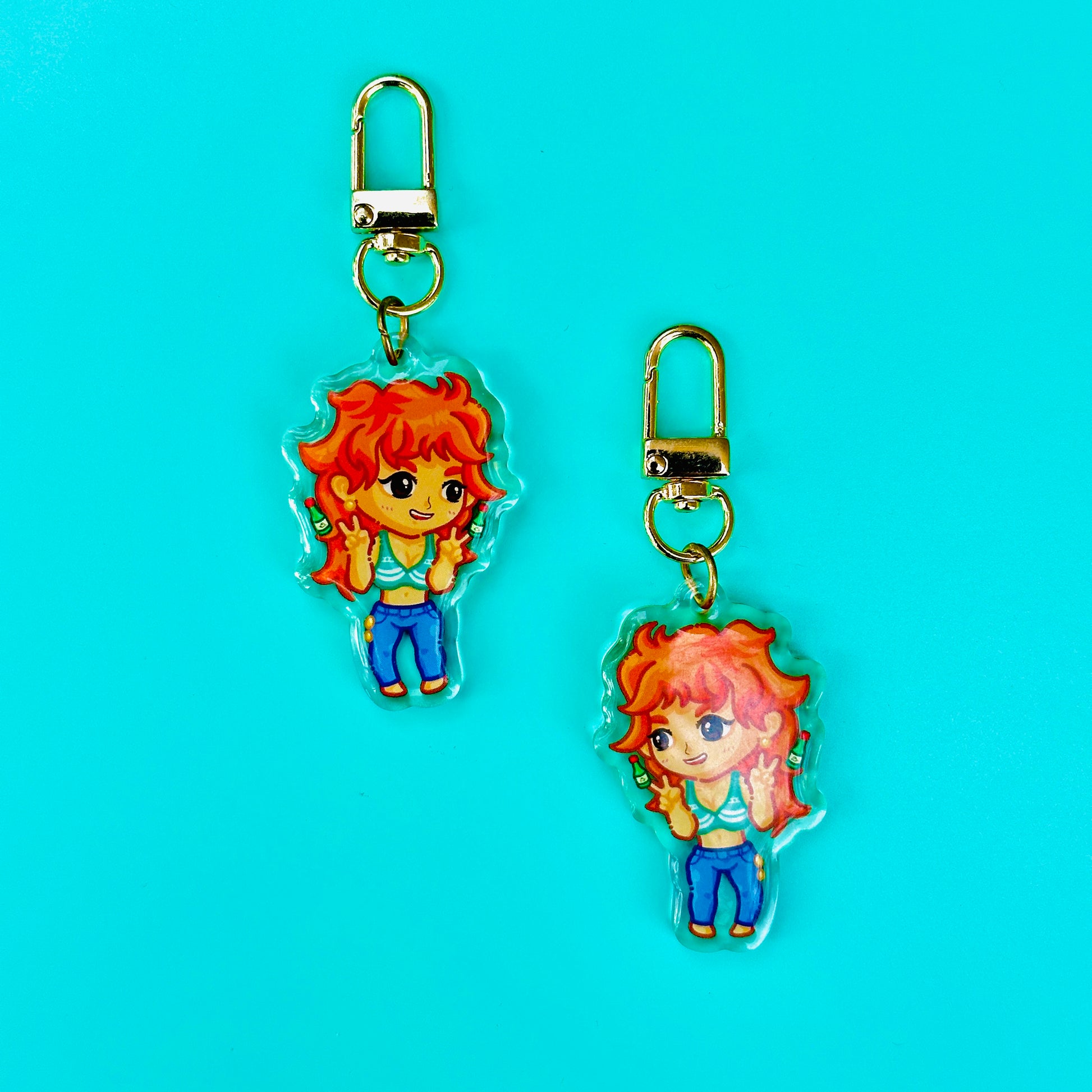 • Double-sided acrylic epoxy keychain with gold clip.