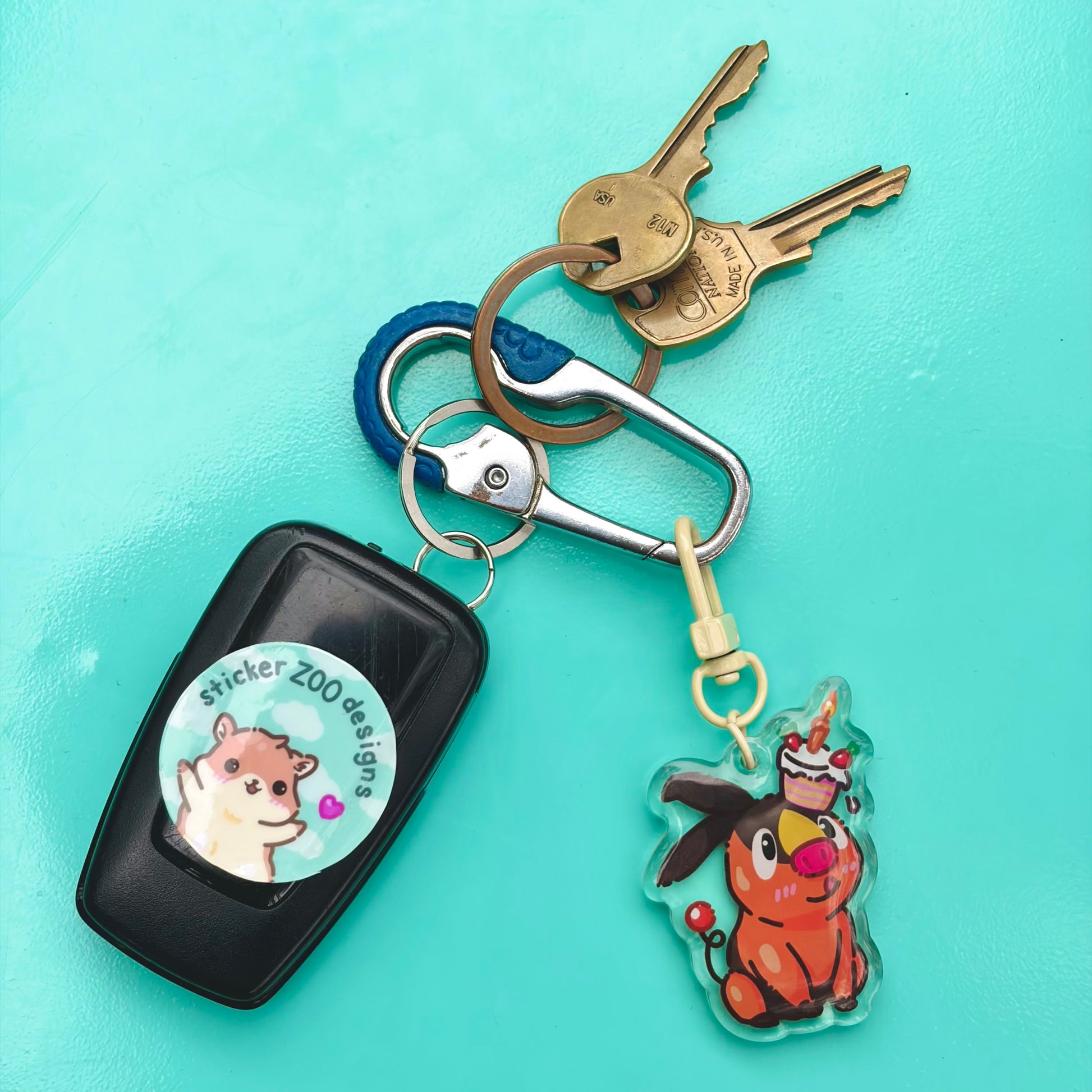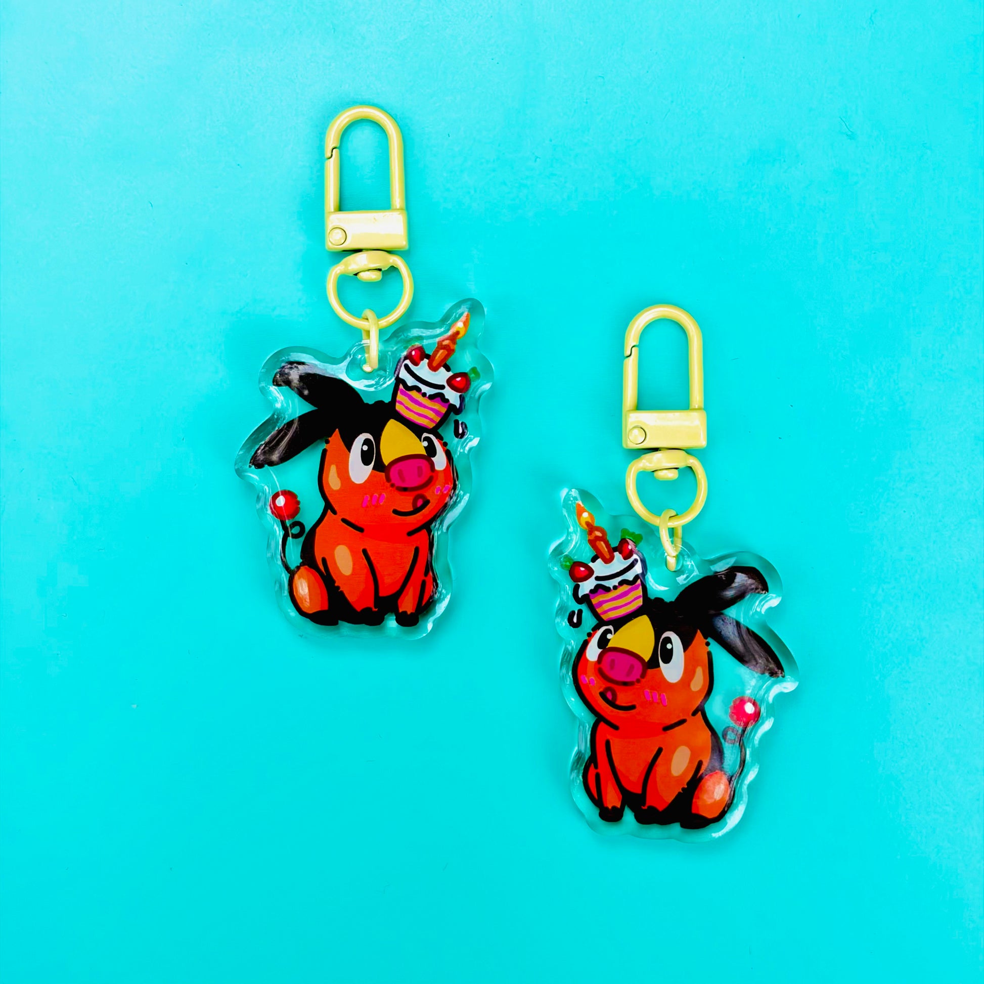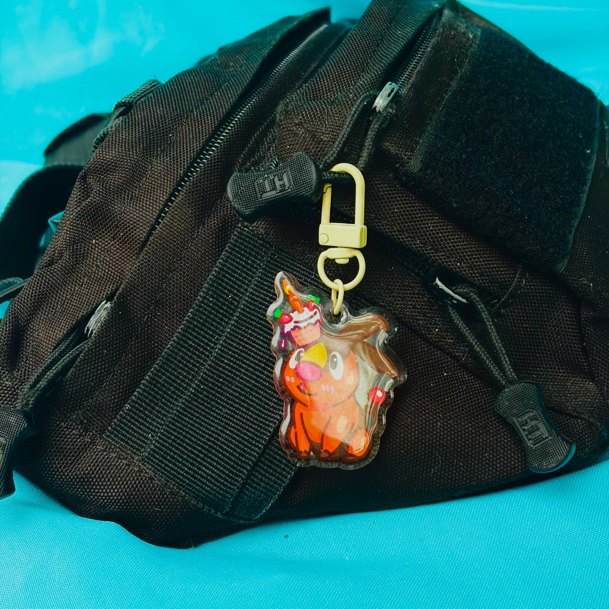 • Double-sided acrylic epoxy keychain with sand clip.