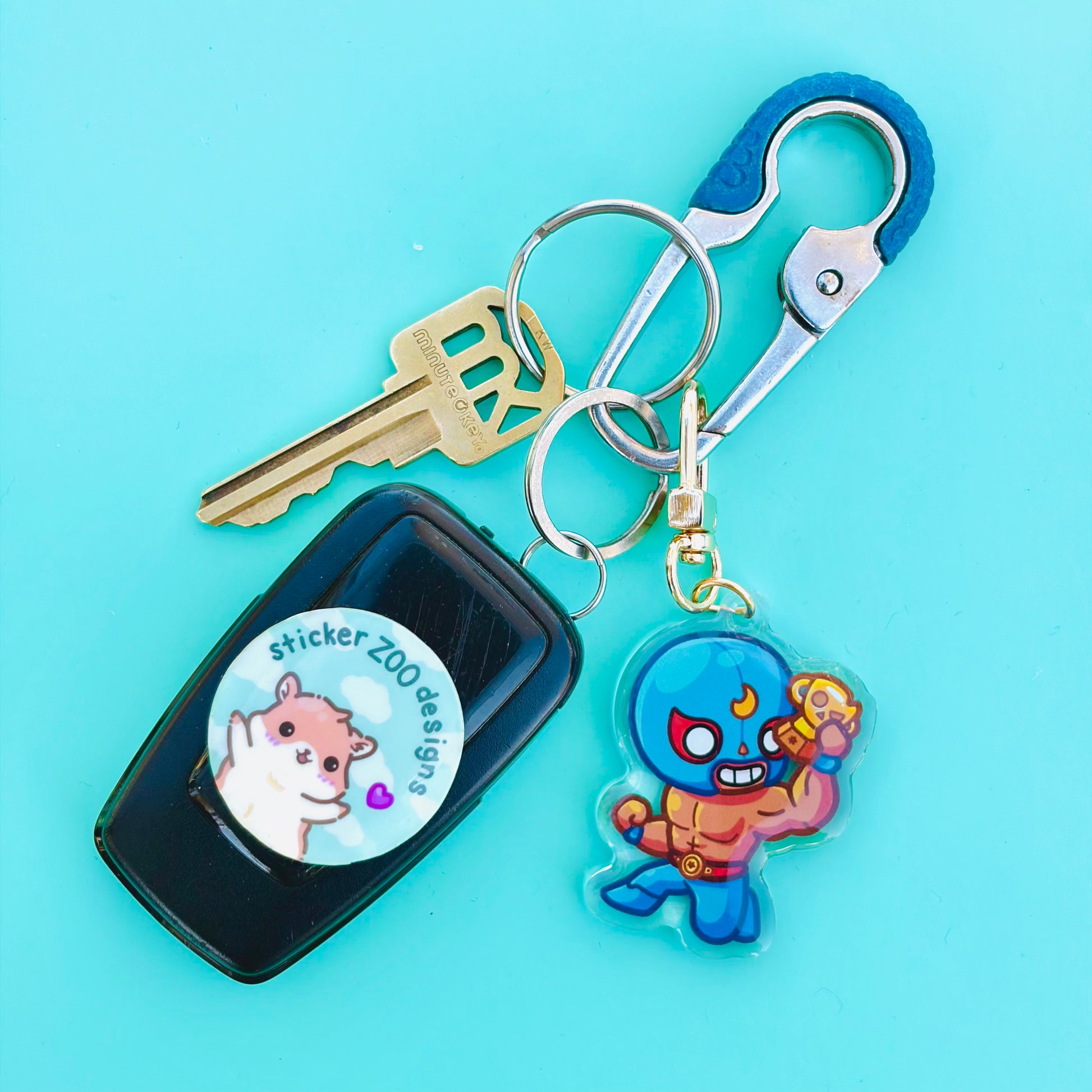 • Double-sided acrylic epoxy keychain with gold clip.