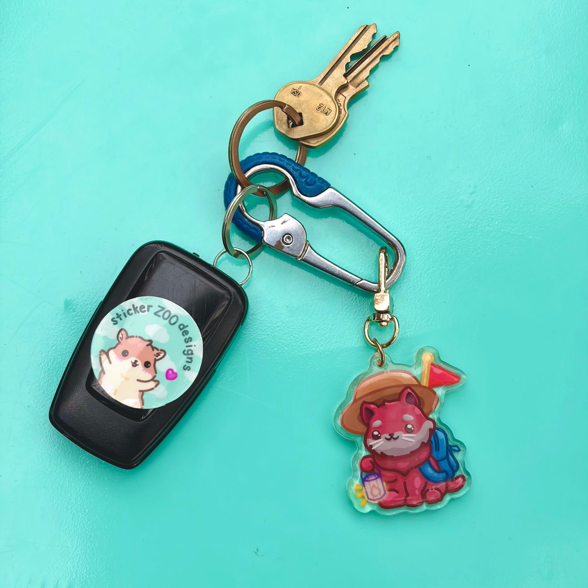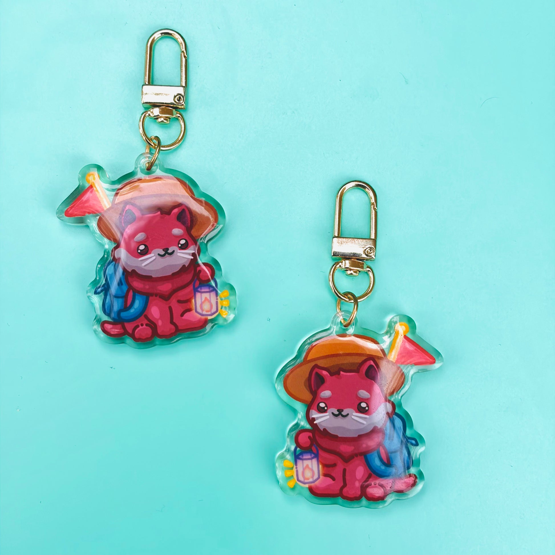 • Double-sided acrylic epoxy keychain with clip on gold chain