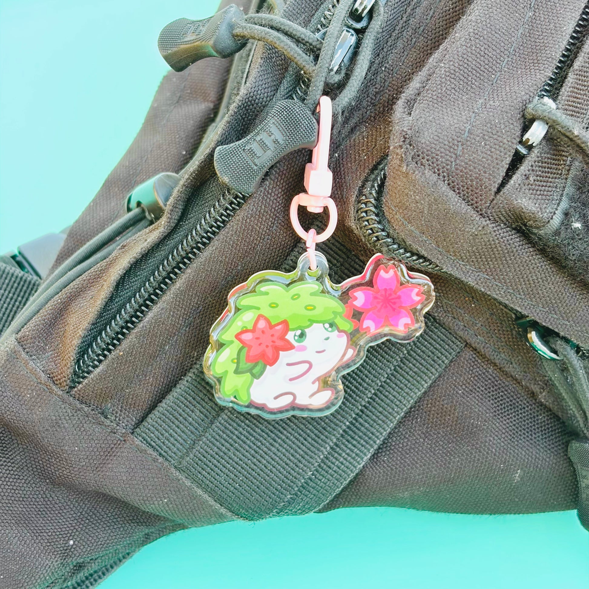 This cute green hedgehog wields sakura flowers, it's Shaymin!