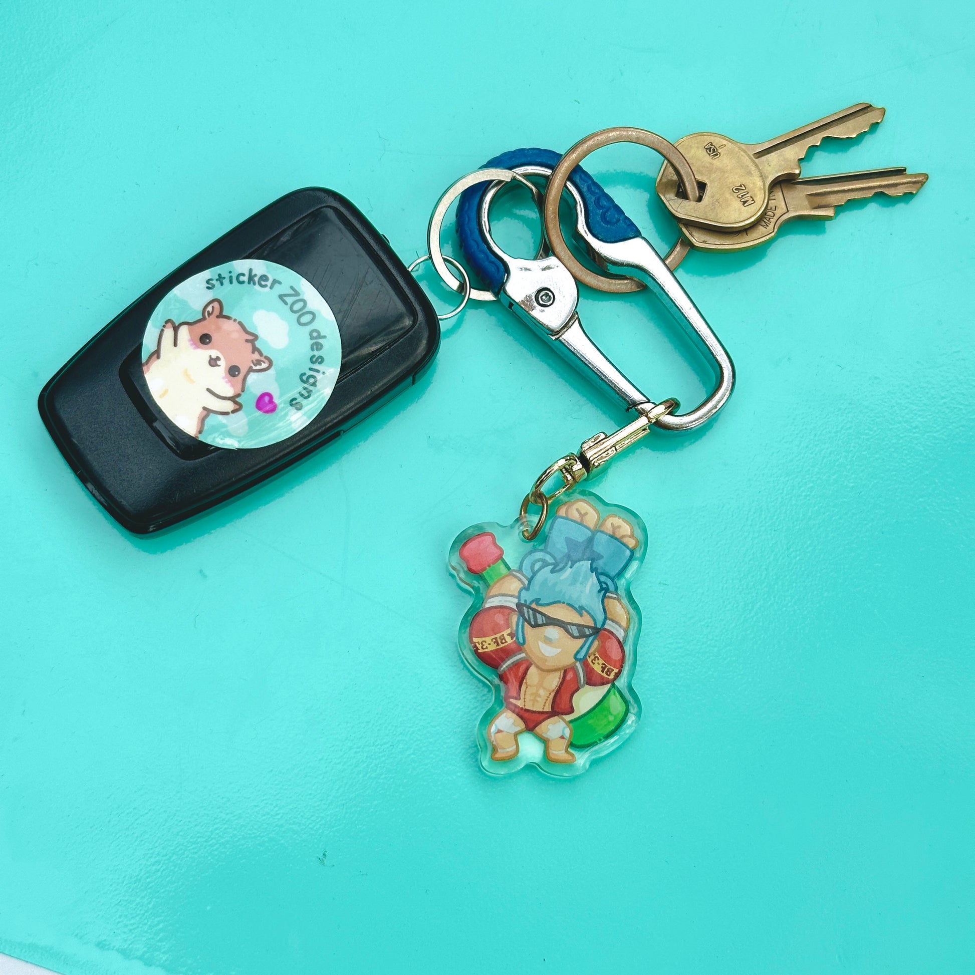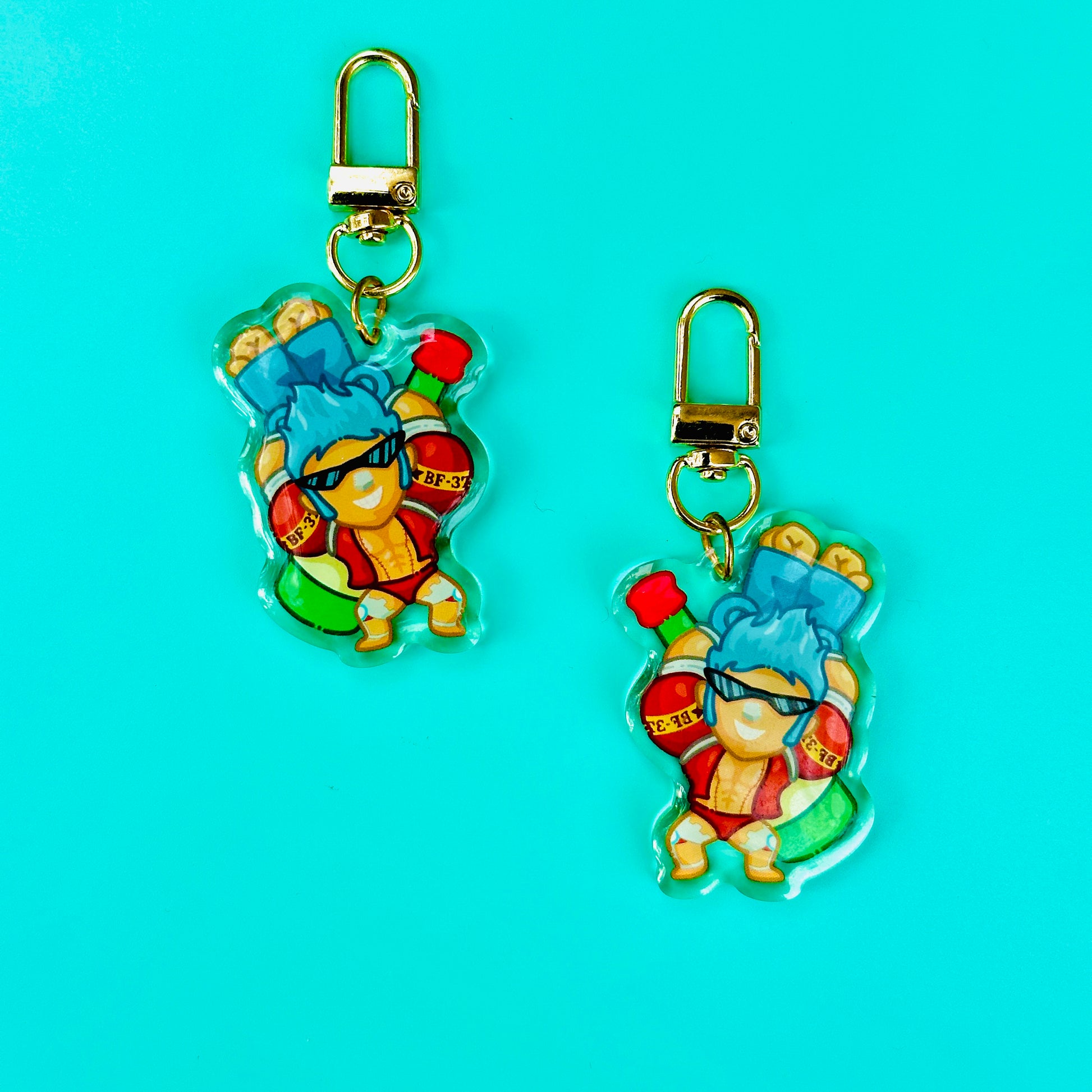 • Double-sided acrylic epoxy keychain with gold clip.