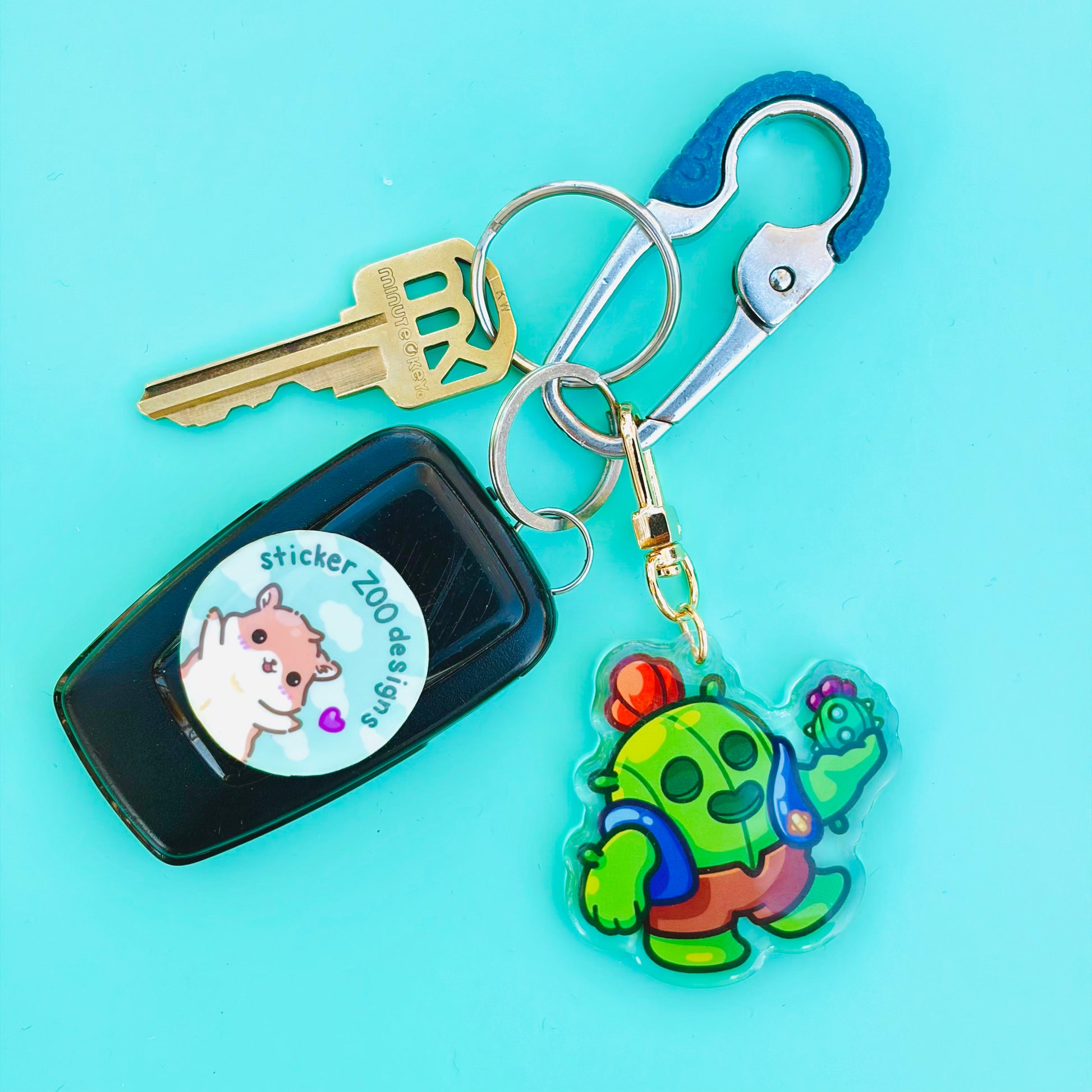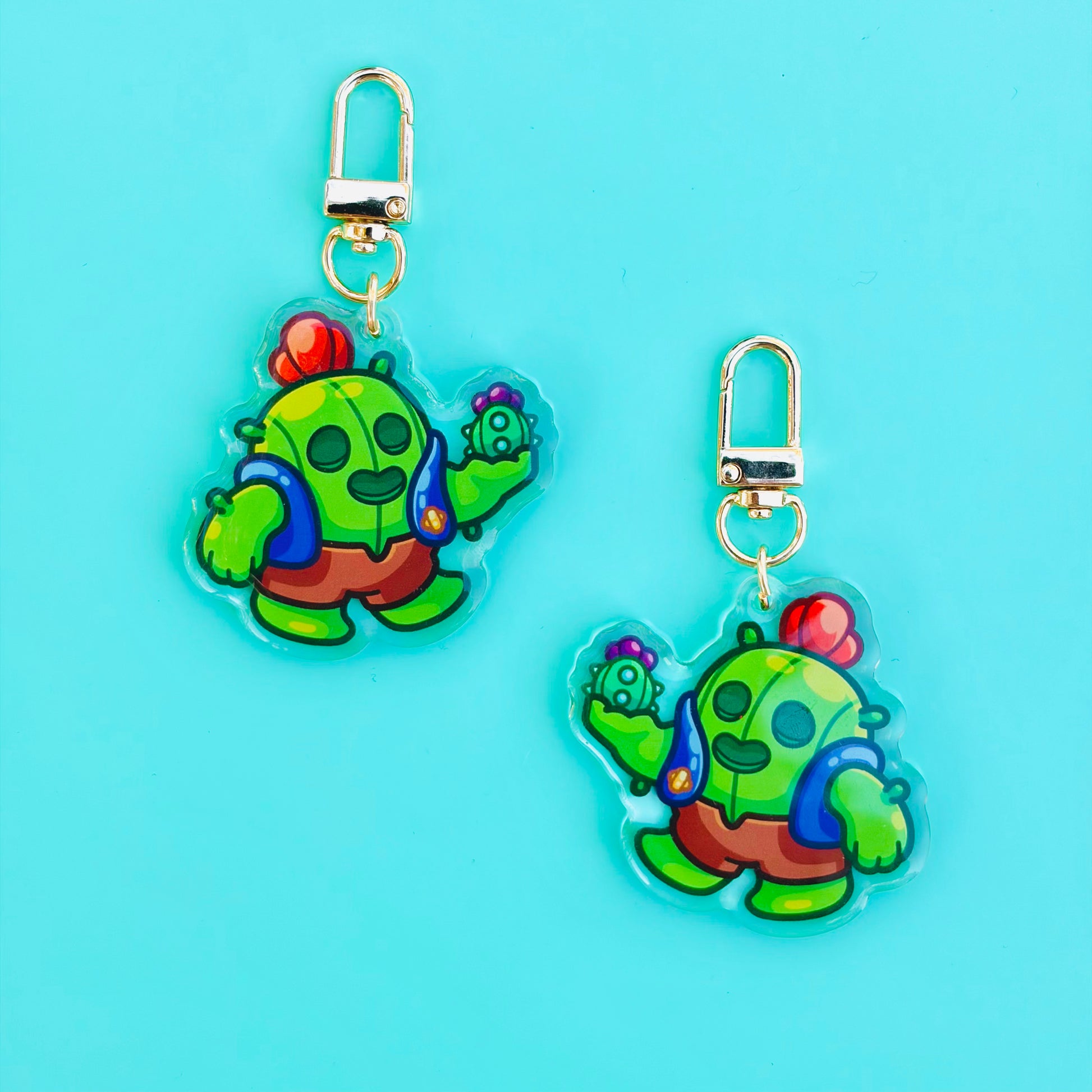 • Double-sided acrylic epoxy keychain with gold clip.