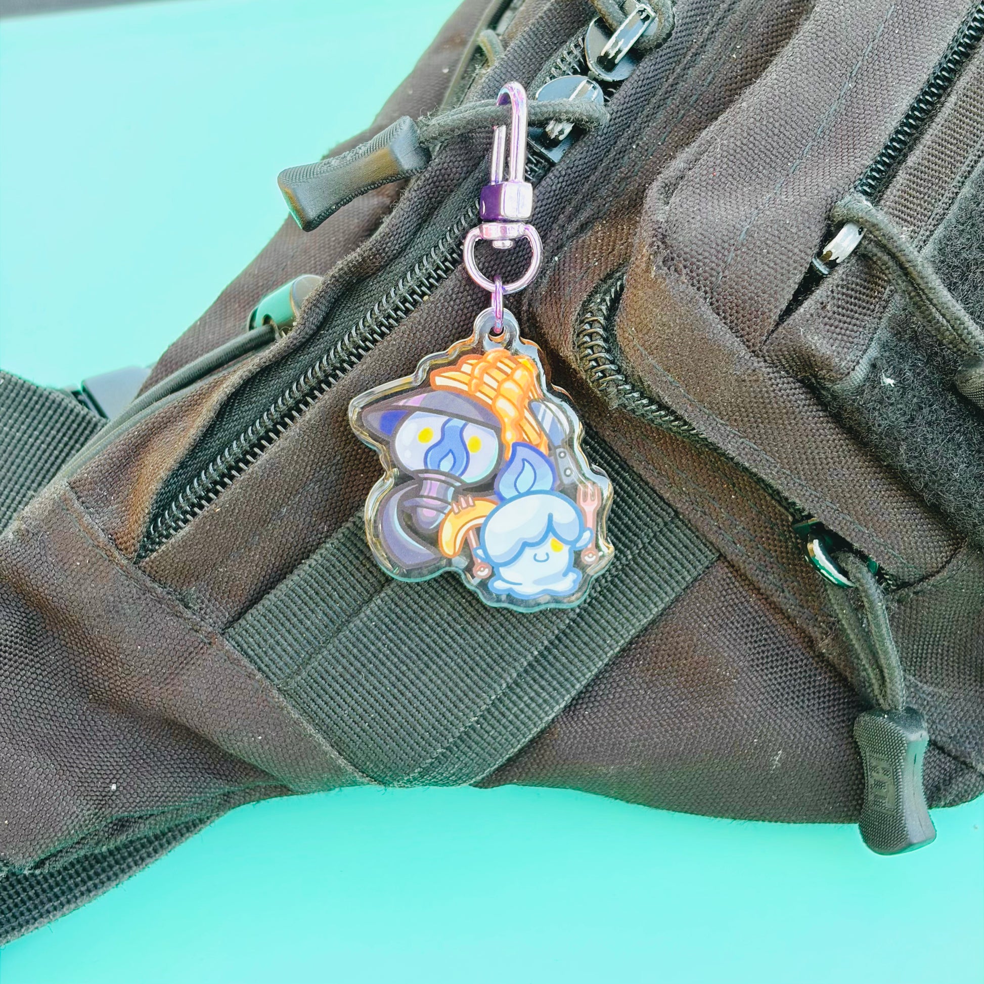 • Double-sided acrylic epoxy keychain with shiny iridescent purple clip.