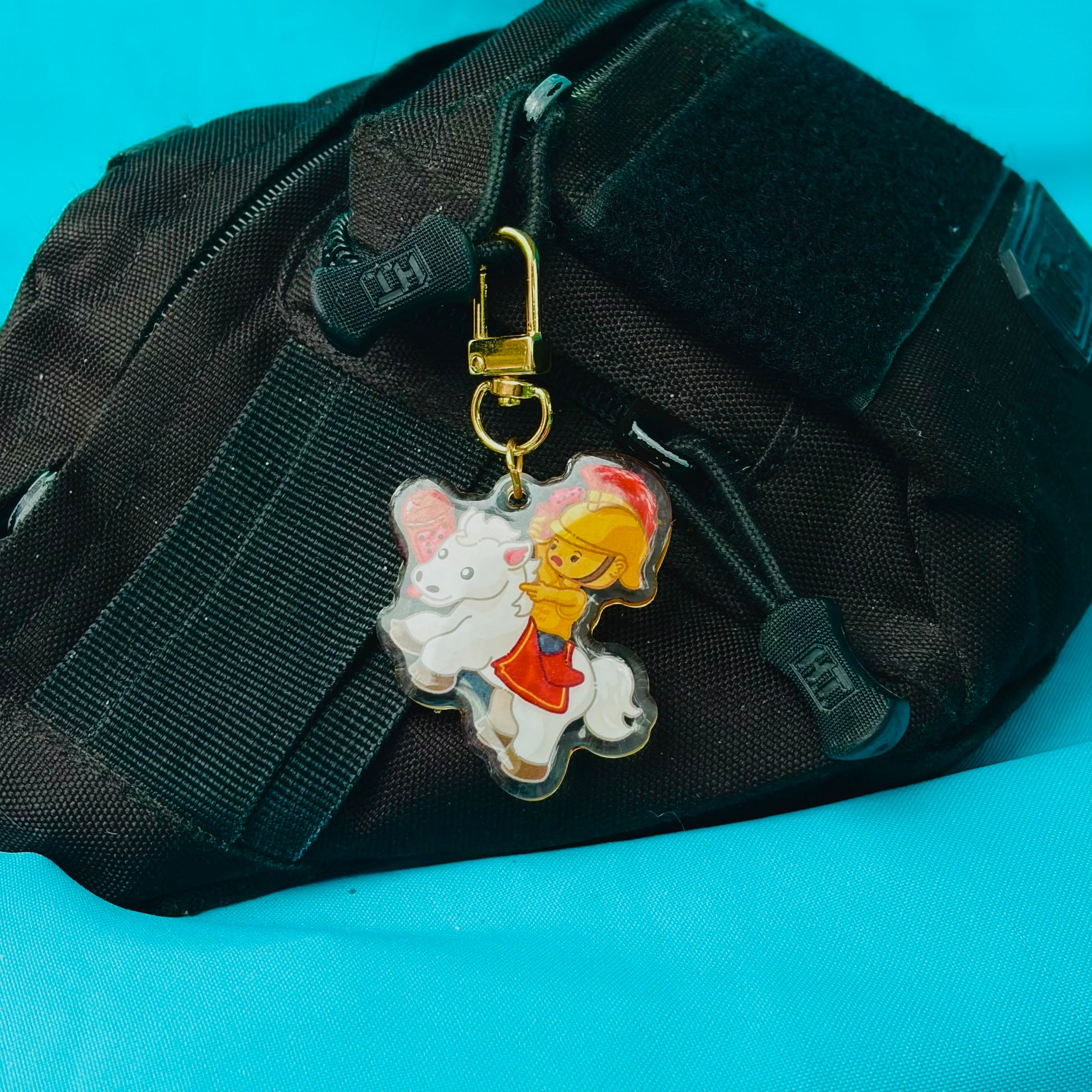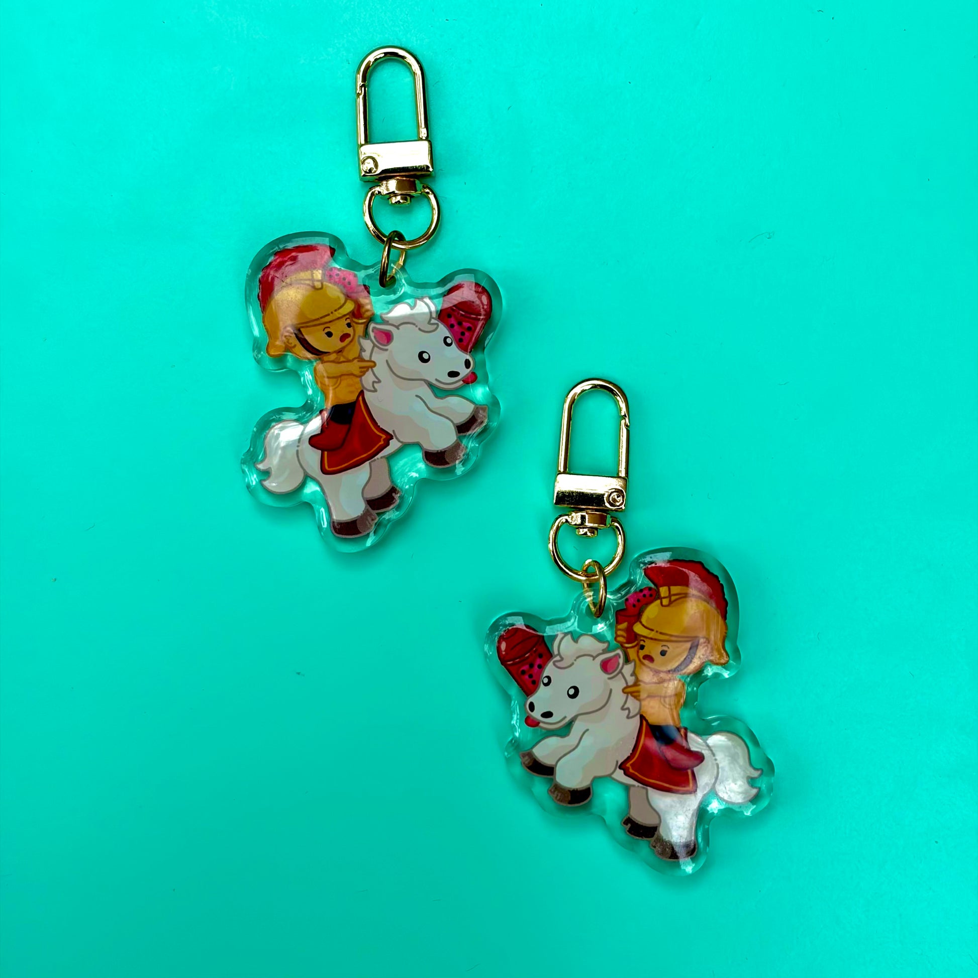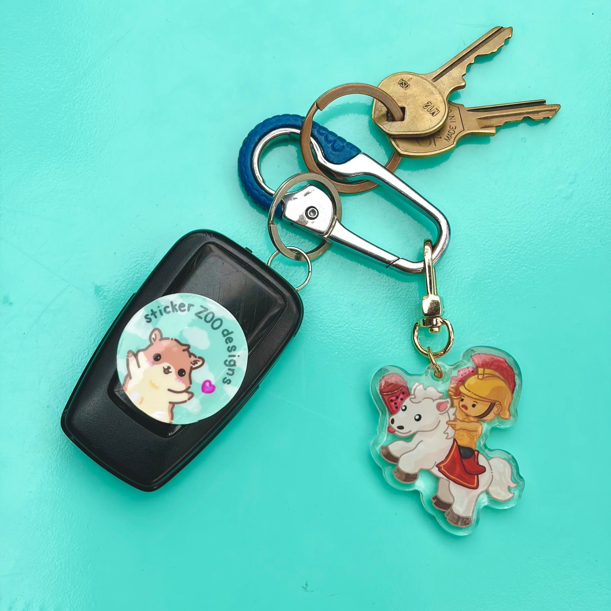 A trojan and white horse keychain charm I created based on the sticker I gave away while briefly at USC in November of 2024.