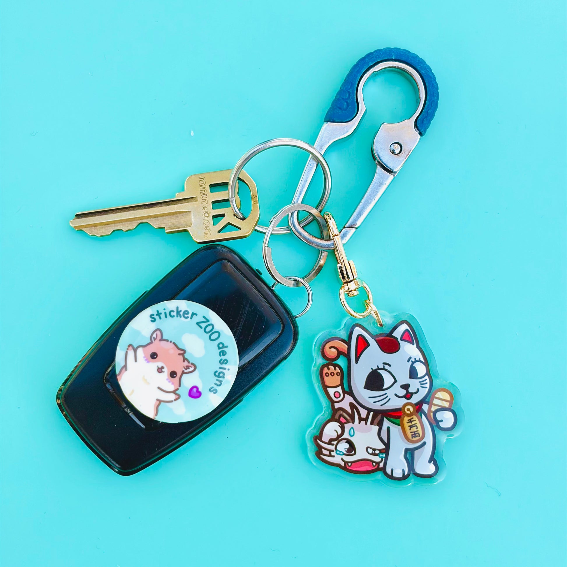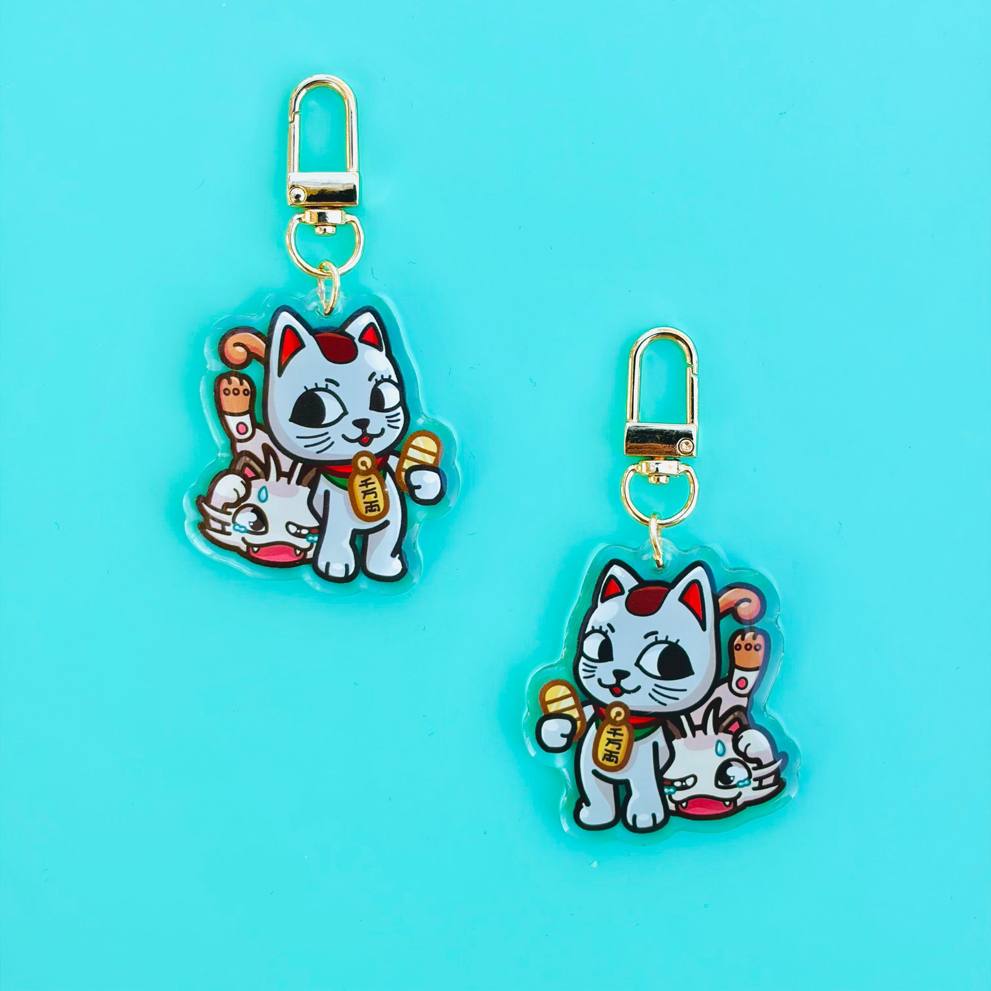 • Double-sided acrylic epoxy keychain with gold clip.