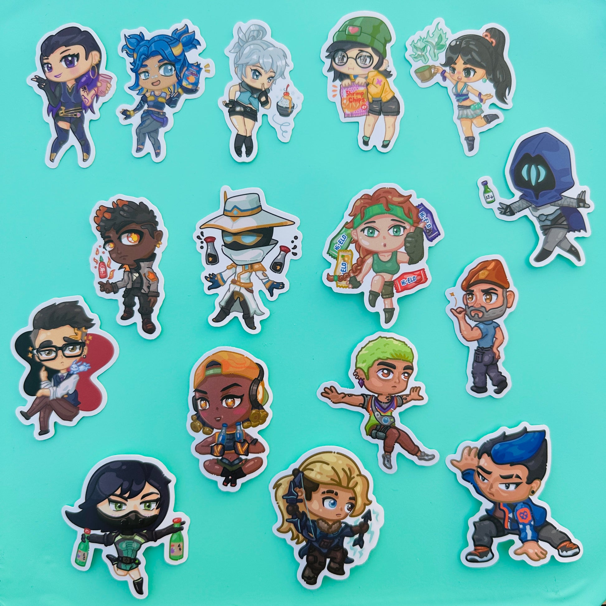 I am still working to draw all of the valorant agents, but these are 16 of the current designs I have! The agents are drawn in base form, or with a food item!